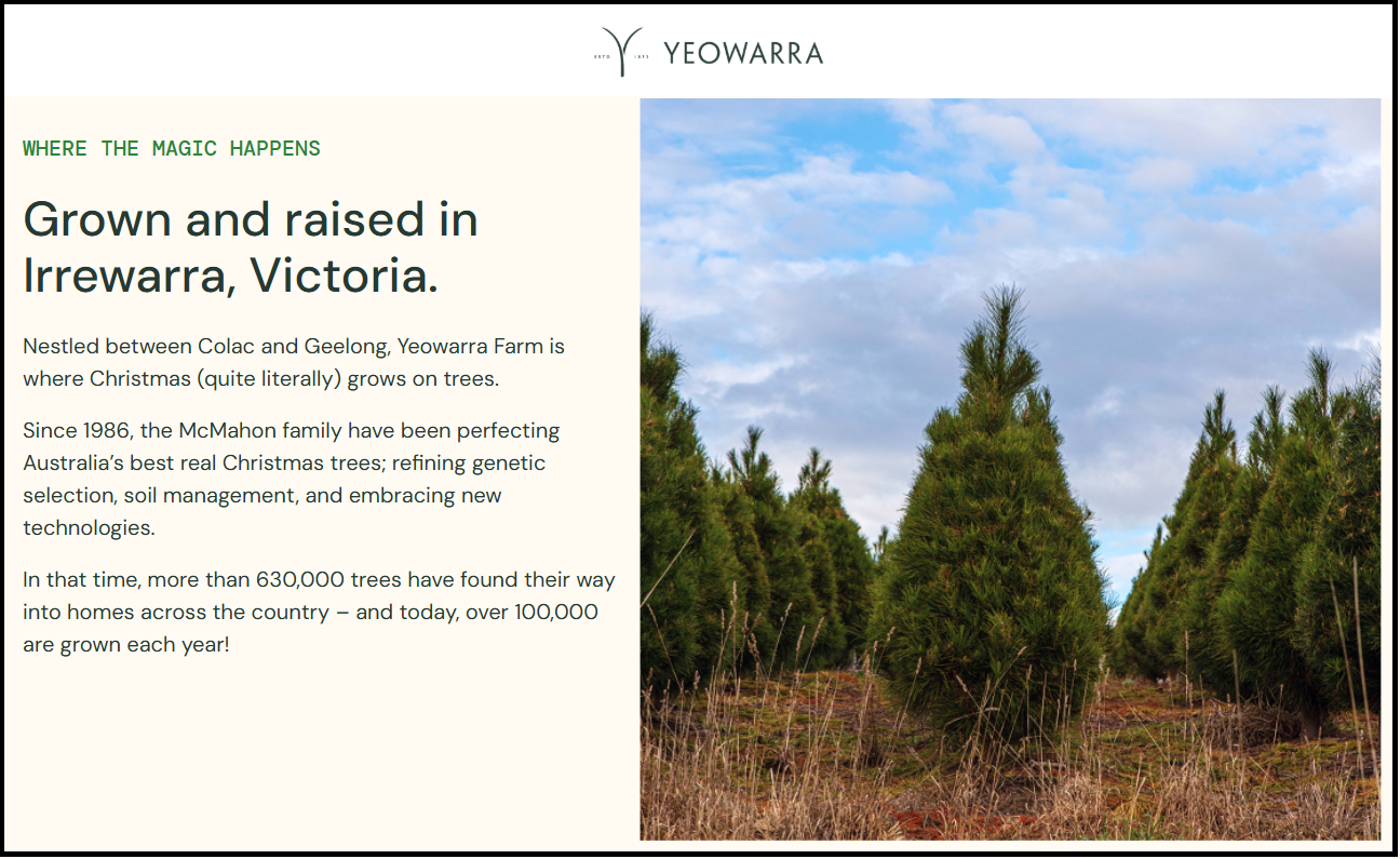 We proudly source our trees from Yeowarra Tree Farm here in Victoria.